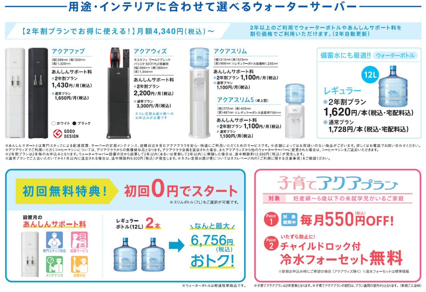 ●ウォーターサーバーレンタル料 1,100円/月(税込)~