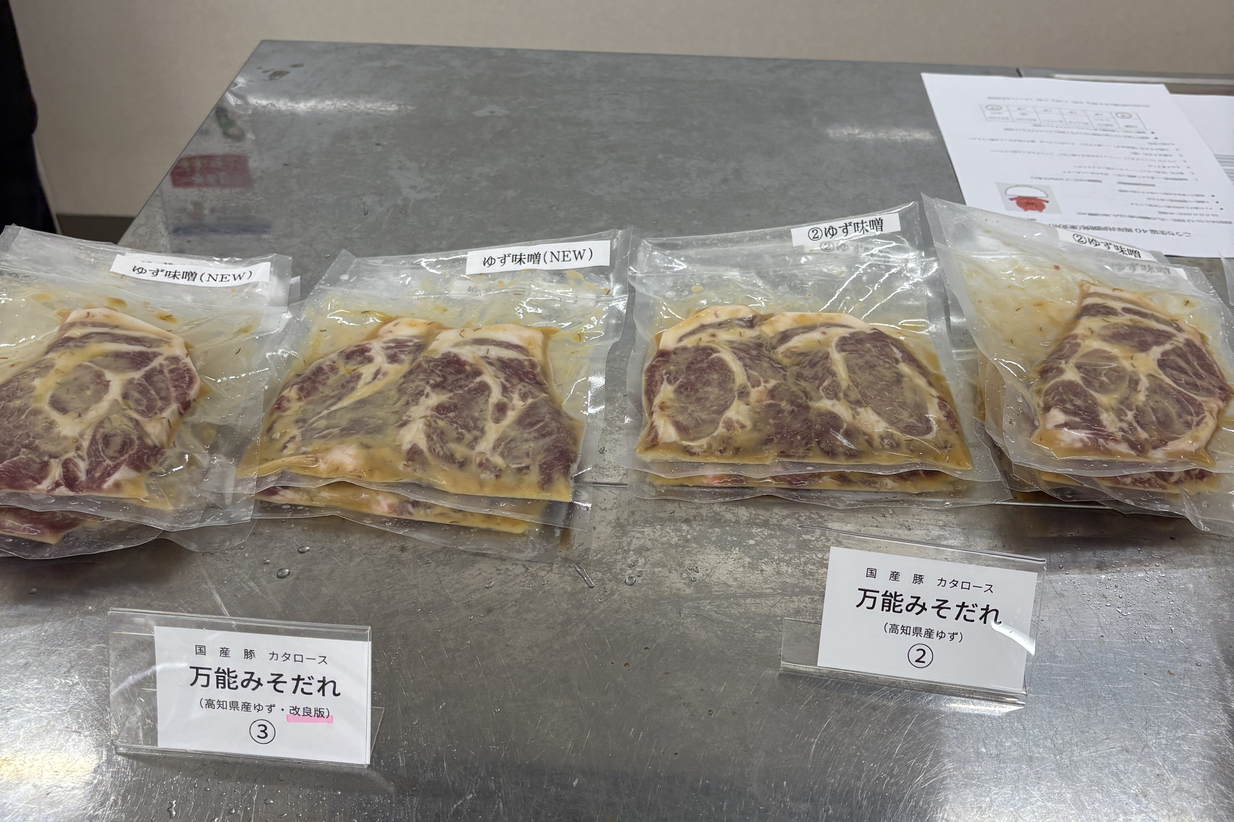 商品活動委員会で事前に希望を募った6種類のタレから生協職員も交えて試食をし、ゆずみそ味と塩麹の2種類の味に決定。組合員さんの食卓を彩るご馳走メニューが出来上がりました。