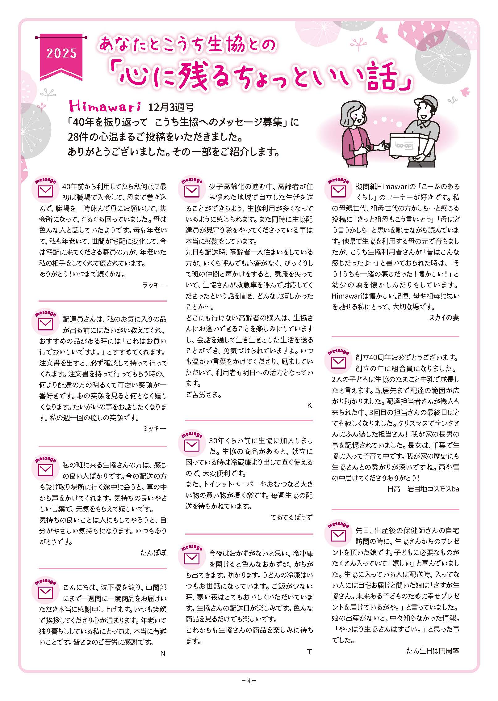 〇特集:あなたとこうち生協との「心に残るちょっといい話」