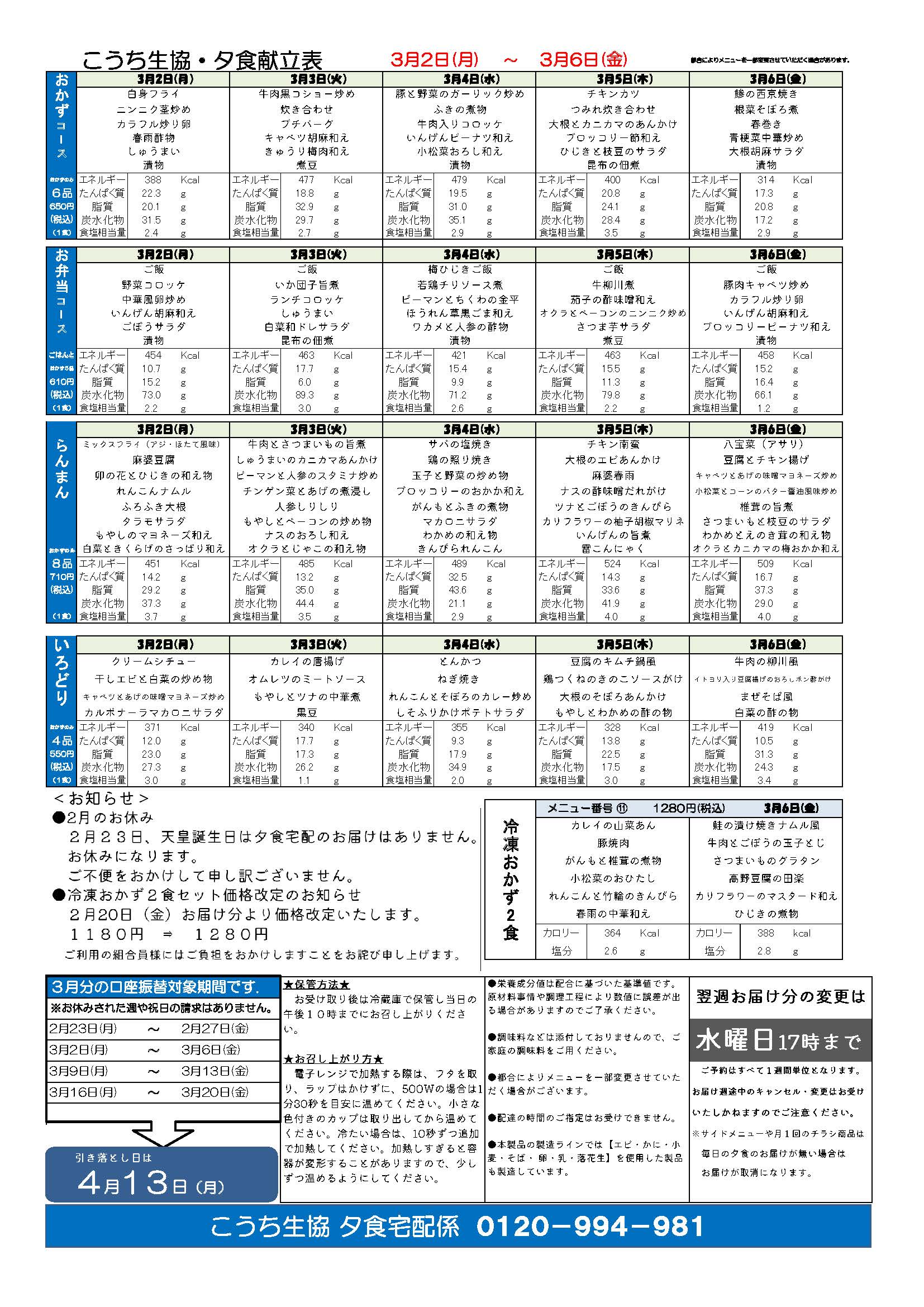 夕食宅配メニュー表(3月2日~3月6日)2026.02.16