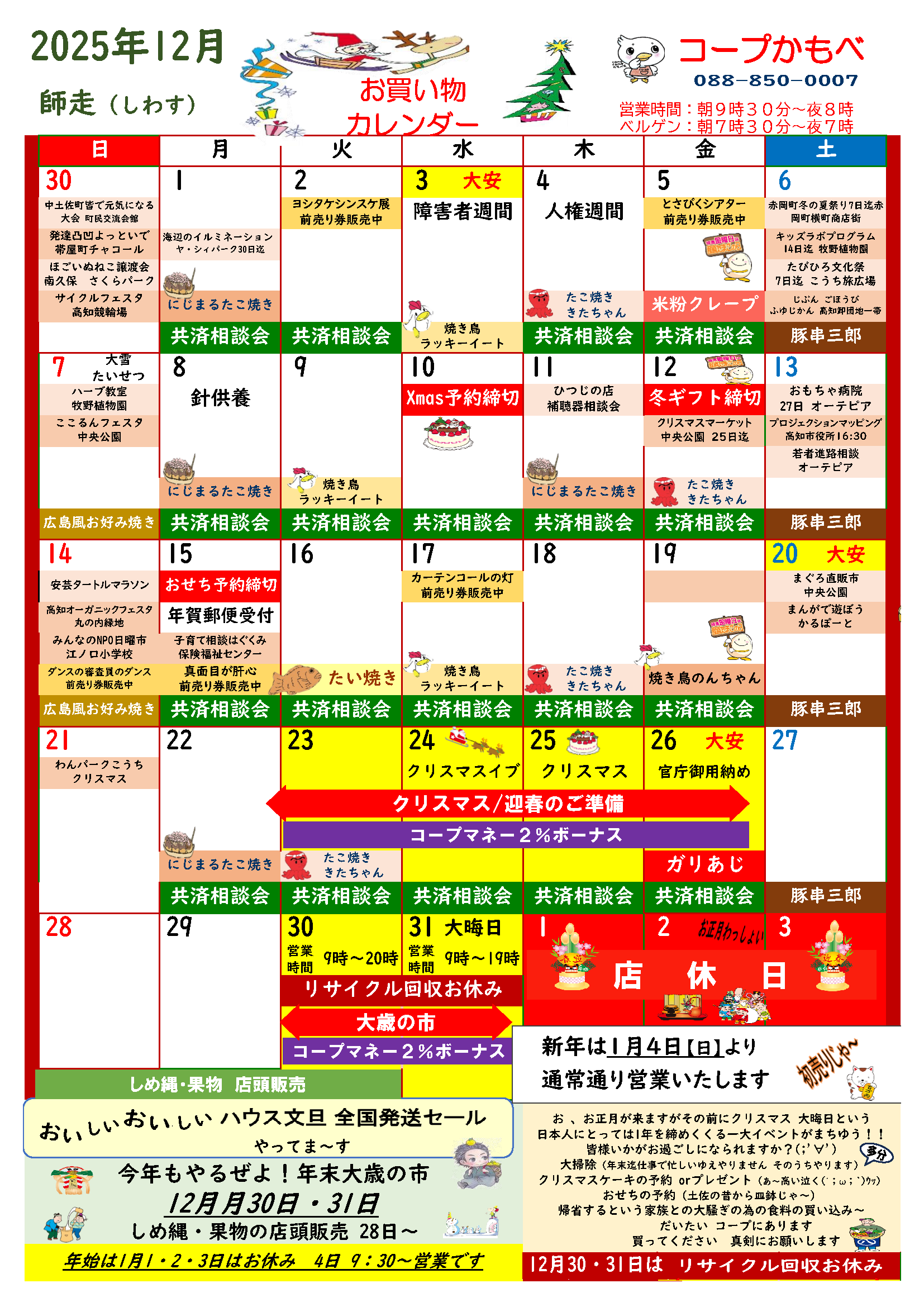 12月はクリスマスに年末の年越し準備と大忙し!お祝いごとの準備はコープのお店でぜひどうぞ!