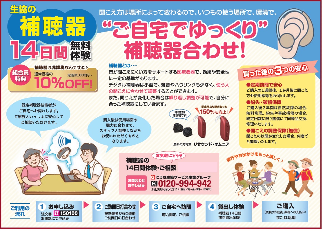 ◆資料請求/こうち生協サービス事業グループへお電話(0120-994-942)