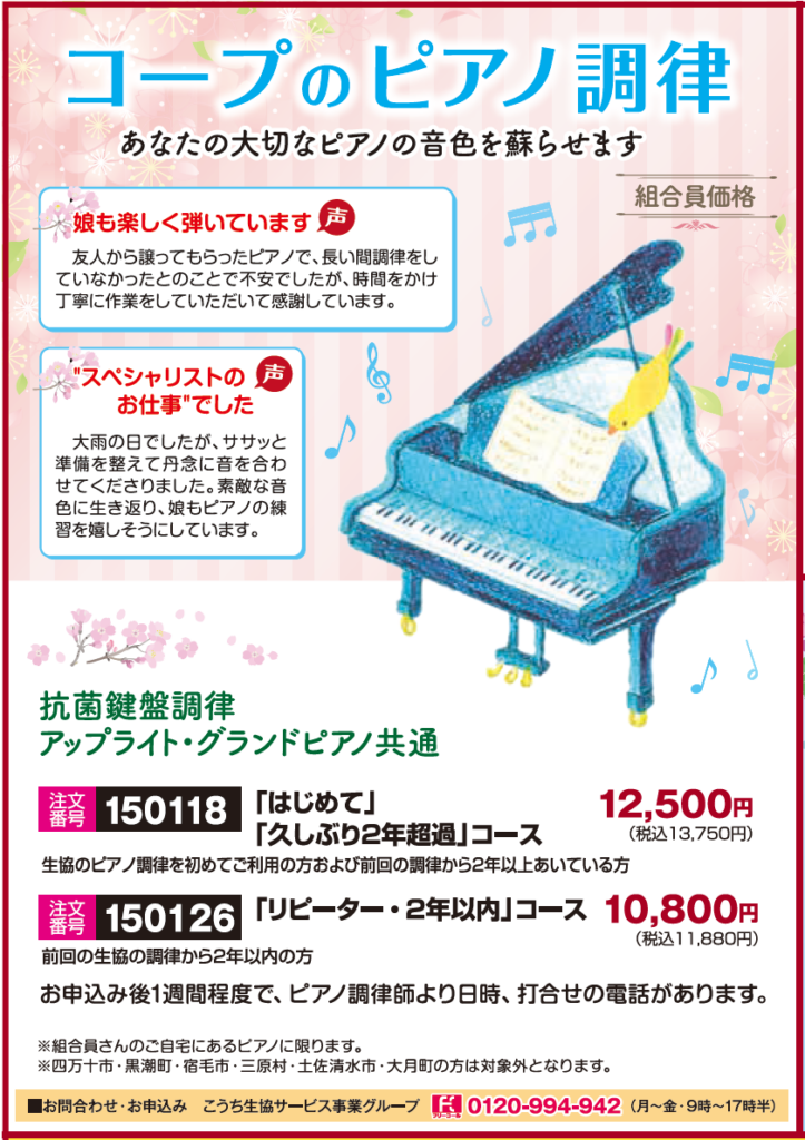 ◆資料請求/こうち生協サービス事業グループへお電話(0120-994-942)